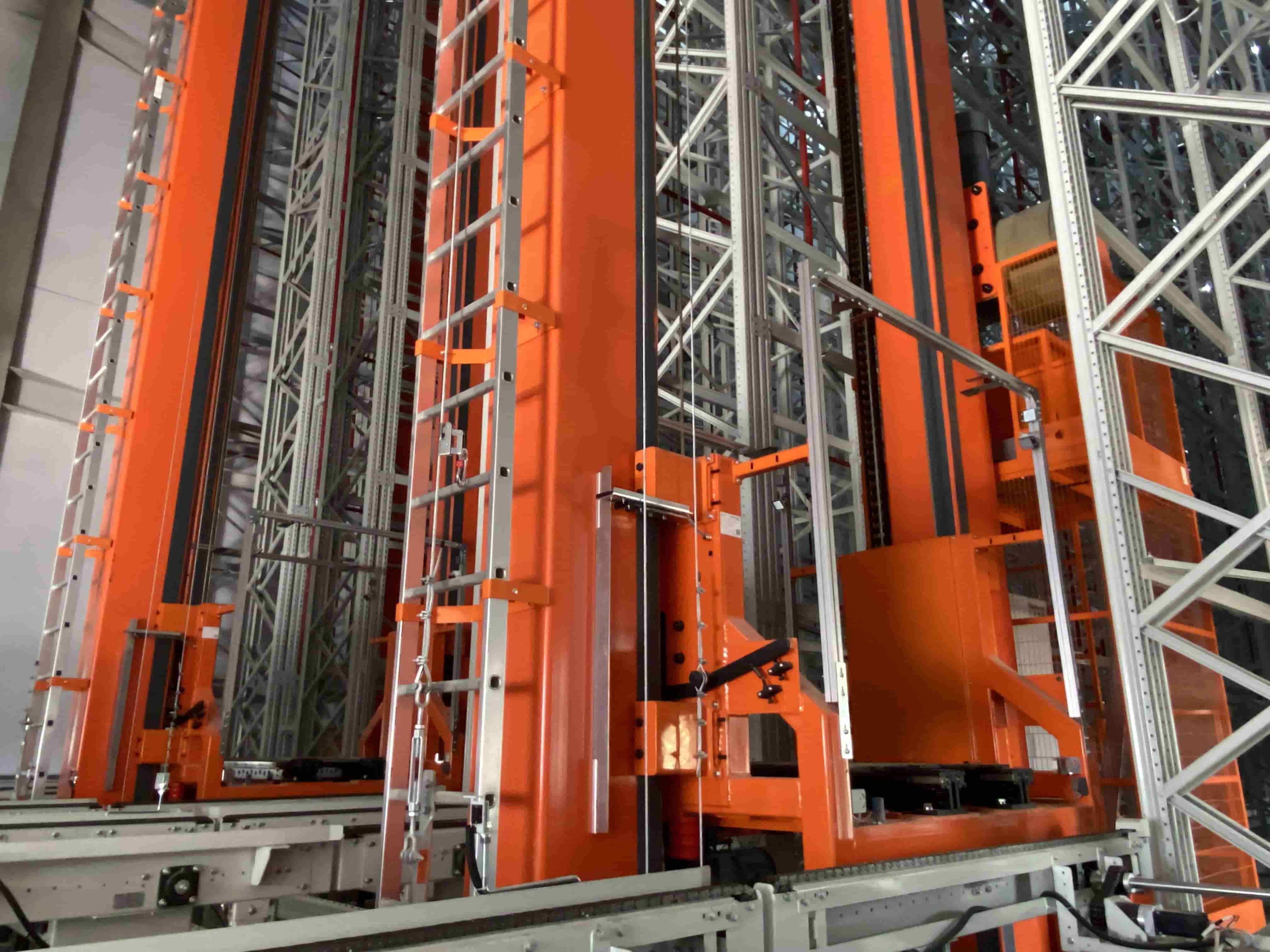 堆垛机立体库货架主要有:立柱片(H10370xW1300/U120x95 厚2.5mm)、调节底脚(12mm底板/M24双螺栓)、横梁(L1870/BB50x120x1.5mm)、顶梁(L1870/BB50x120x1.5mm)、链接杆(L250/F40x40x1.5mm)、背拉底座(L190/F40x40x1.5mm)、斜拉(L2800/φ32x1.5mm)、地斜拉(L690/φ32x1.5mm)、吊梁(L4550/50*100*2.5 )、顶斜拉(L2100/φ32x1.5mm)、货位斜拉(L2100/φ32x1.5mm)、端部支架(10#槽钢)、天轨(L93260/角钢100*100*10mm)、天轨防撞座(天轨防撞底座加聚氨酯缓冲器)、地轨(38kg地轨L93260)其中各组件的规格尺寸随仓库高度和层载而变动。